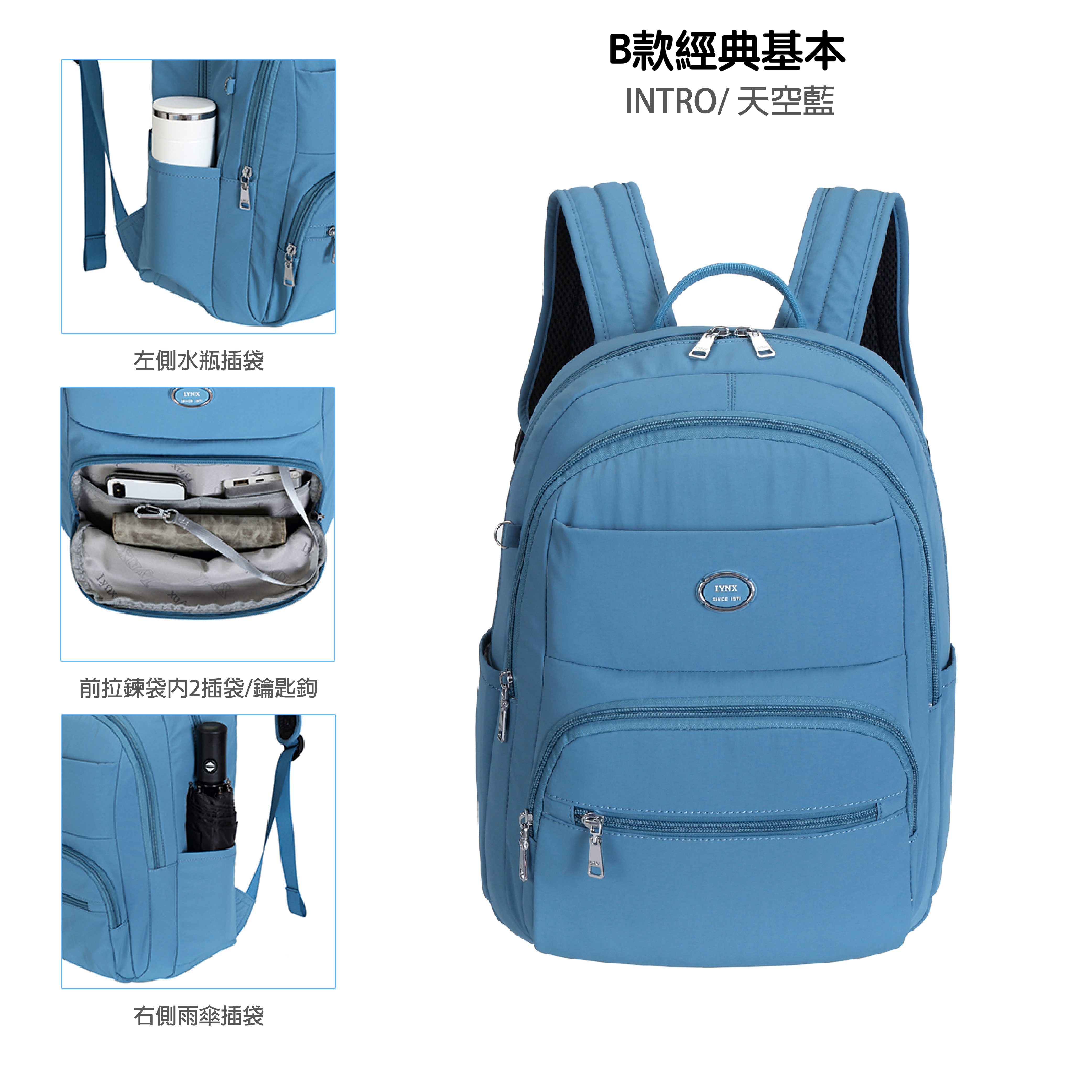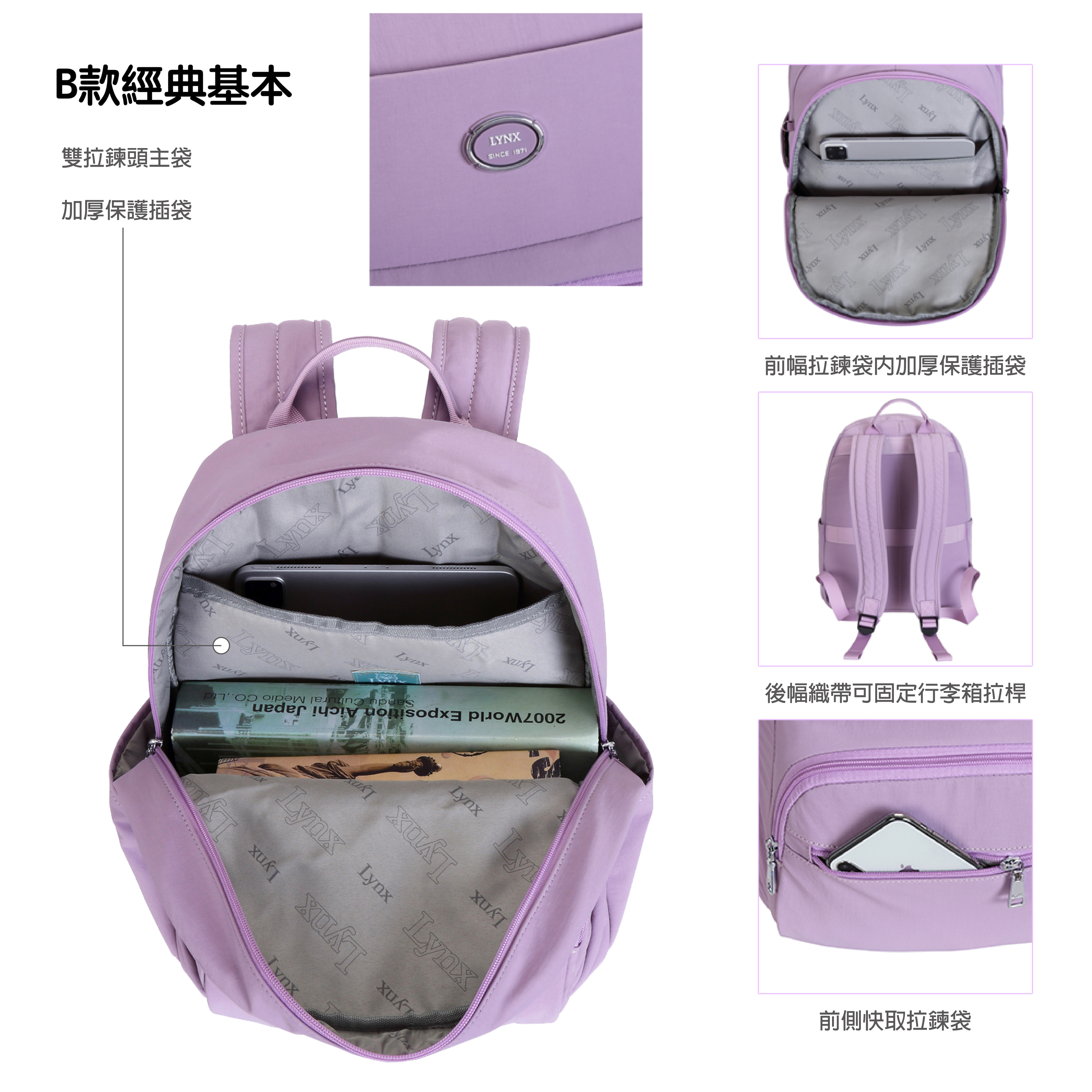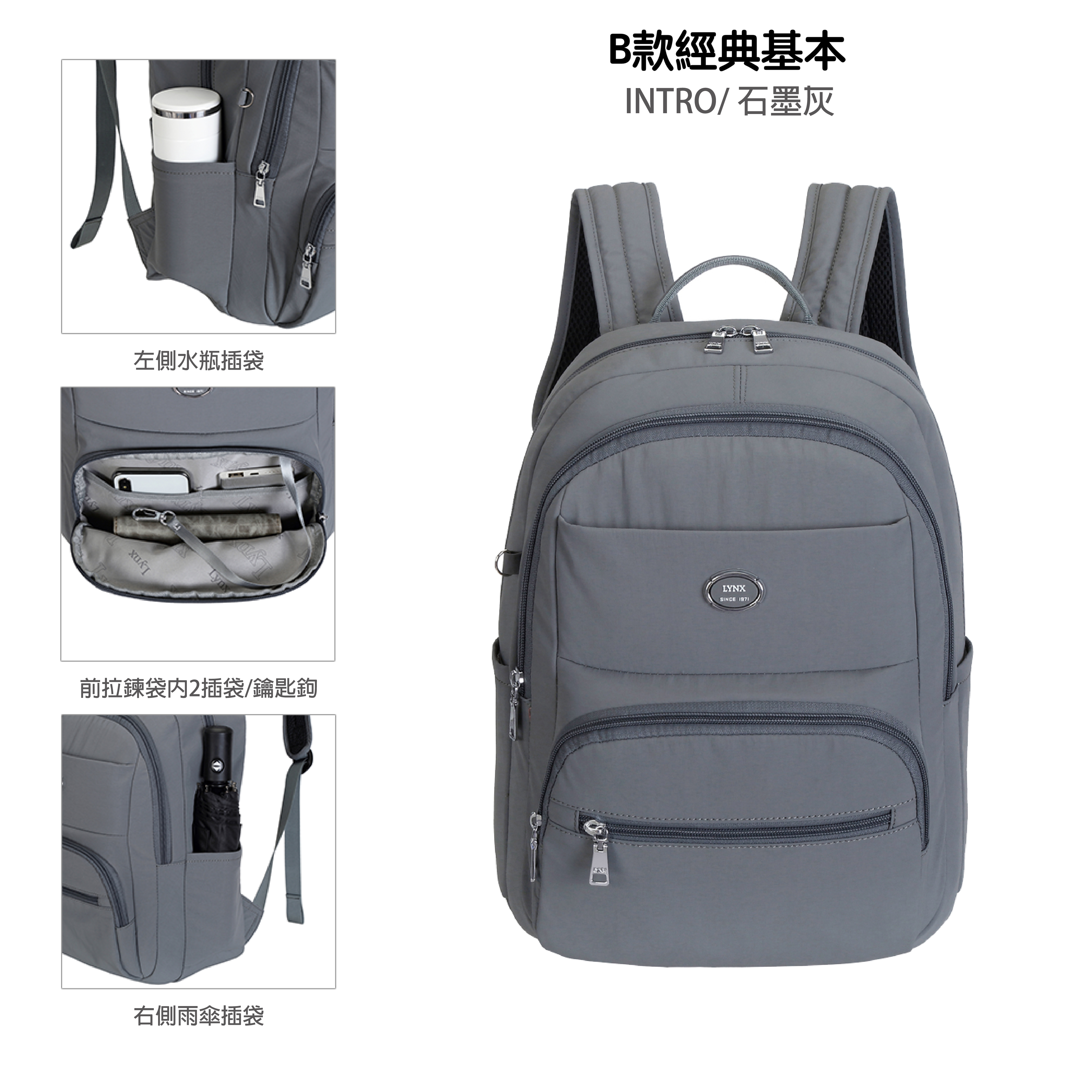 A款防盜後開背包約為750公克,B款經典基本背包約為580公克