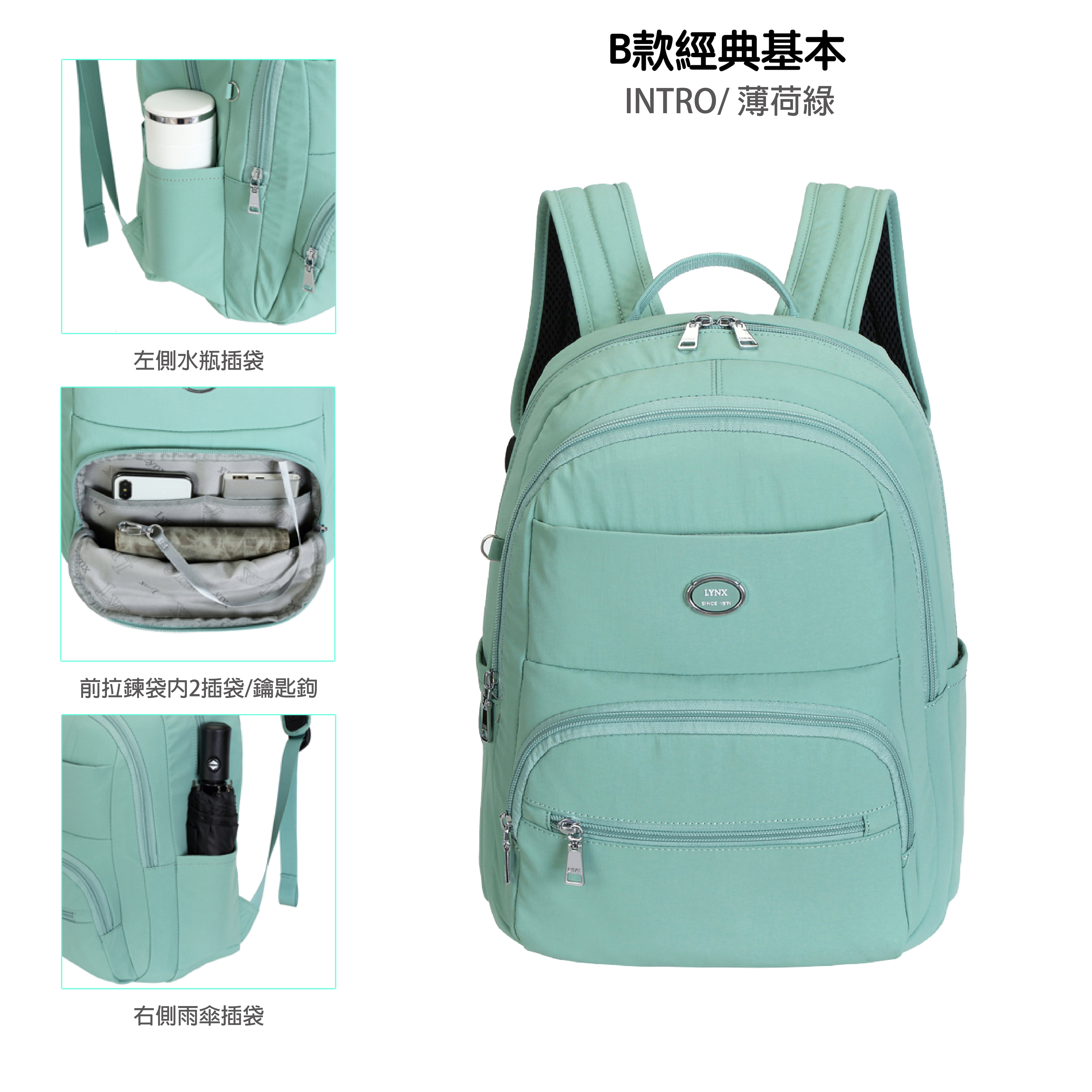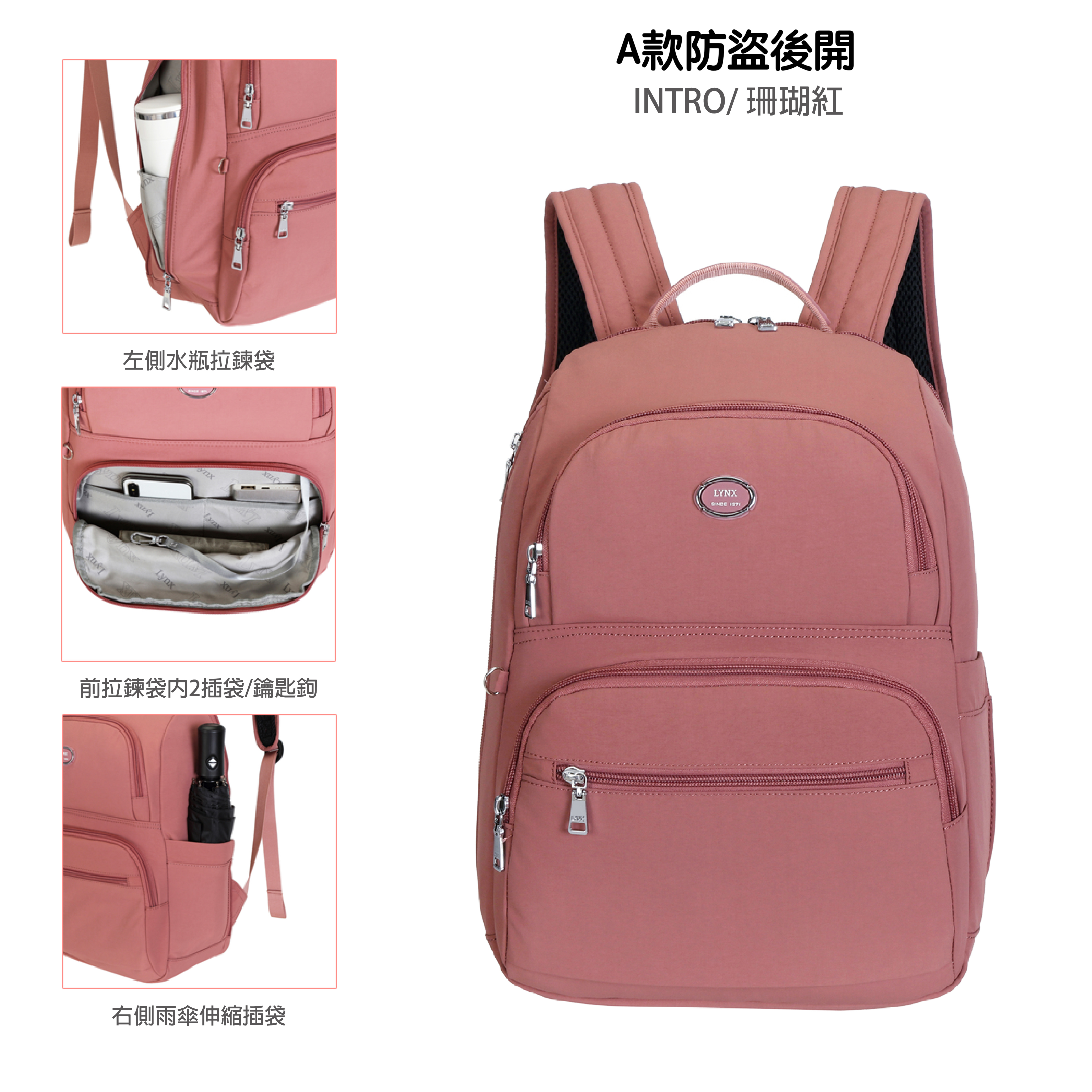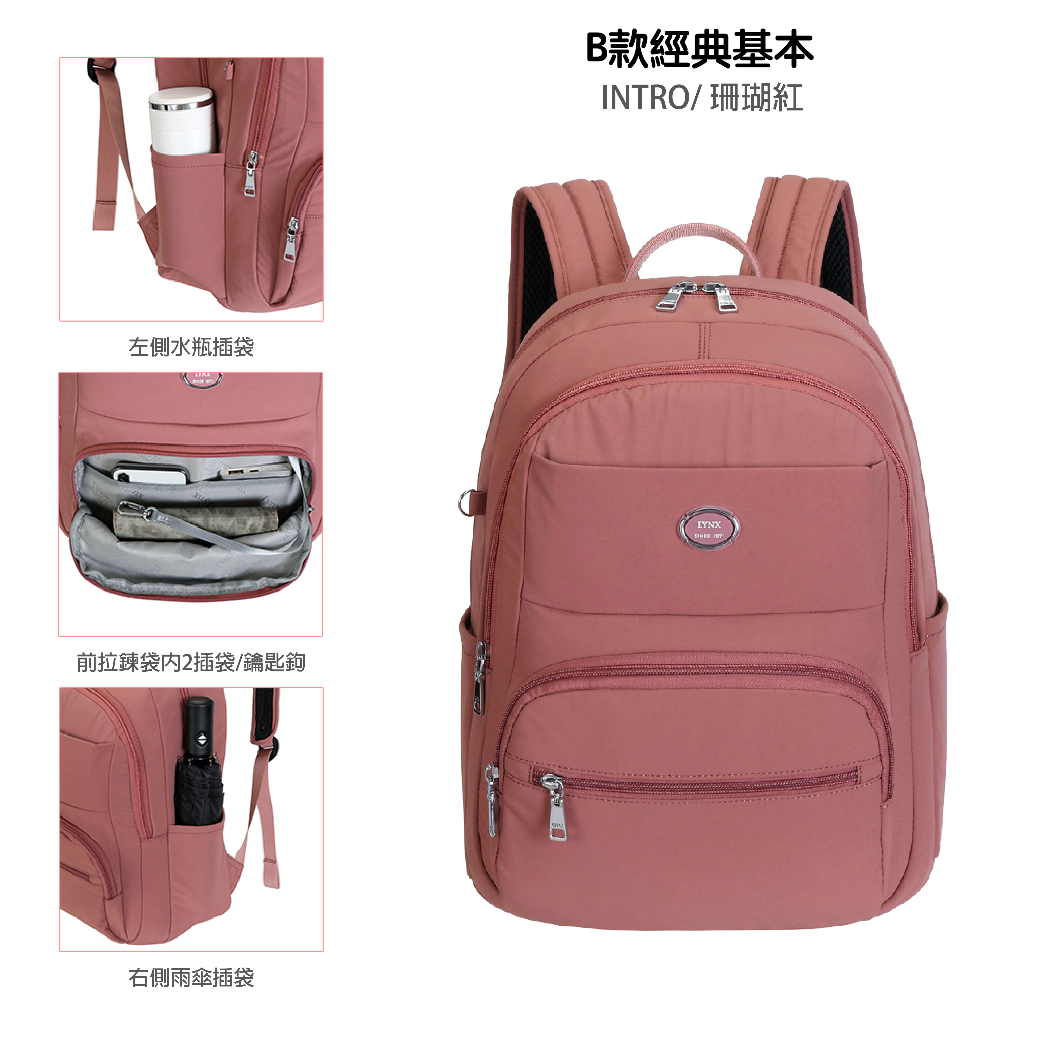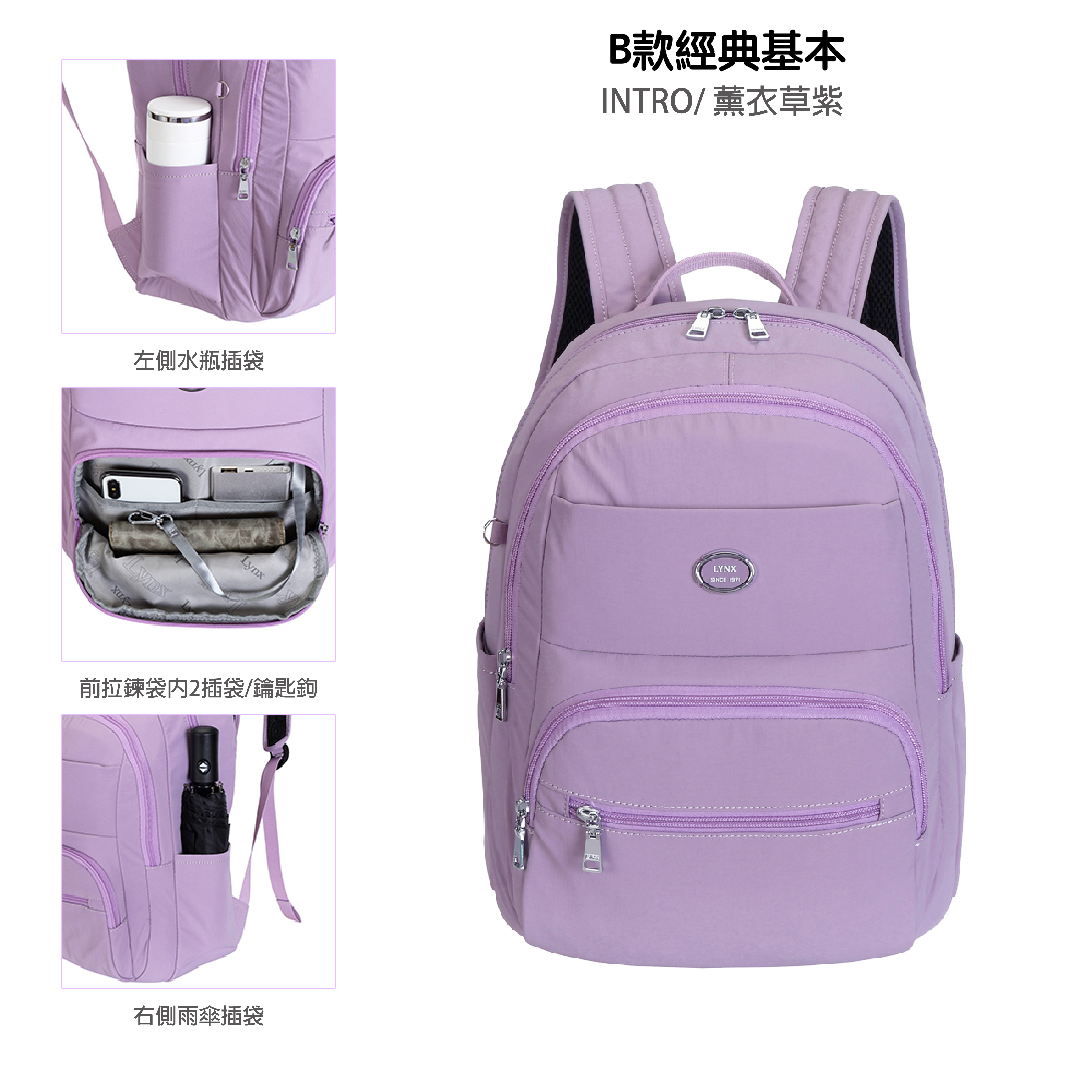 A款防盜後開背包約為750公克,B款經典基本背包約為580公克