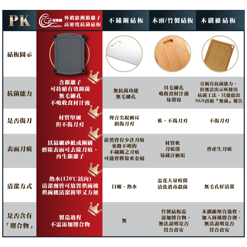 保惠獅-【廚房好消息】抗菌防黴銀離子砧板(雙面可用)
