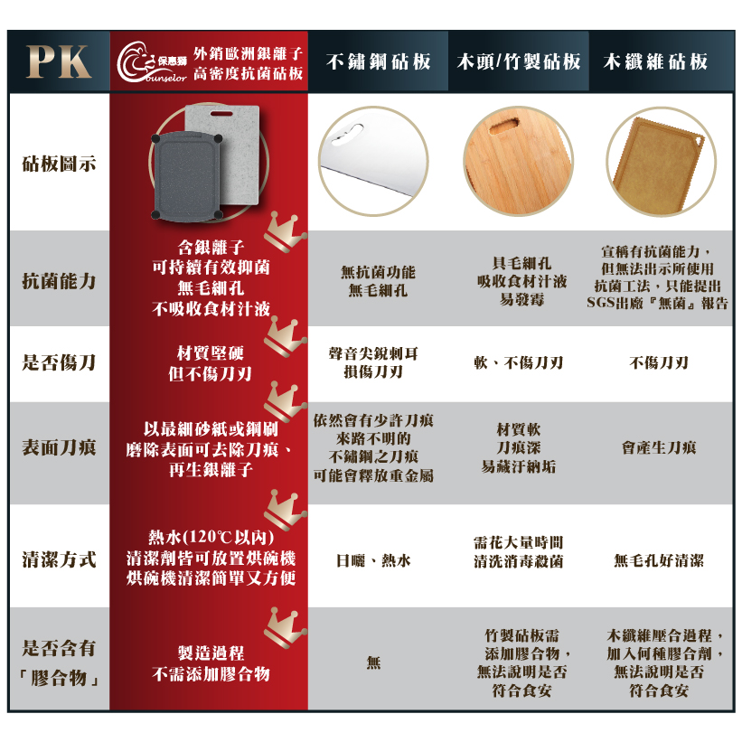 - 硬度夠,耐切耐剁不怕摔、且不傷刀刃