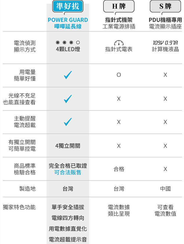 ✅直覺用電量提示燈、四段用電不怕超載危險